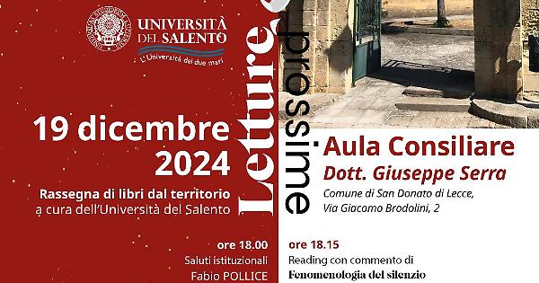 L’iniziativa rientra nella grande intuizione dell’Università salentina di interloquire con il territorio mettendo a disposizione tutto l’armamentario scientifico, allorquando nel 2022 diede vita a “Letture prossime. Rassegna di libri dal territorio"; un progetto coordinato da Beatrice Stasi col coinvolgimento, in qualità di commissari, di una cinquantina di studiosi tra docenti e cultori di disciplina.