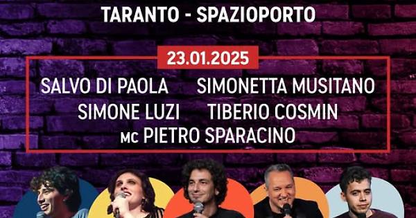 La line-up di comedians previsti per questa tappa tarantina è composta da: Salvo Di Paola, Simone Luzi, Tiberio Cosmin, Simonetta Musitano introdotti, come sempre, dal Mc Pietro Sparacino che farà alternare i comici sul palco.