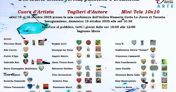 1. "Cuore d’artista": una collettiva dove gli autori si esprimono su tele sagomate a forma di cuore (30x30 cm), trasformando l’amore per l’arte in un linguaggio universale di sentimenti.