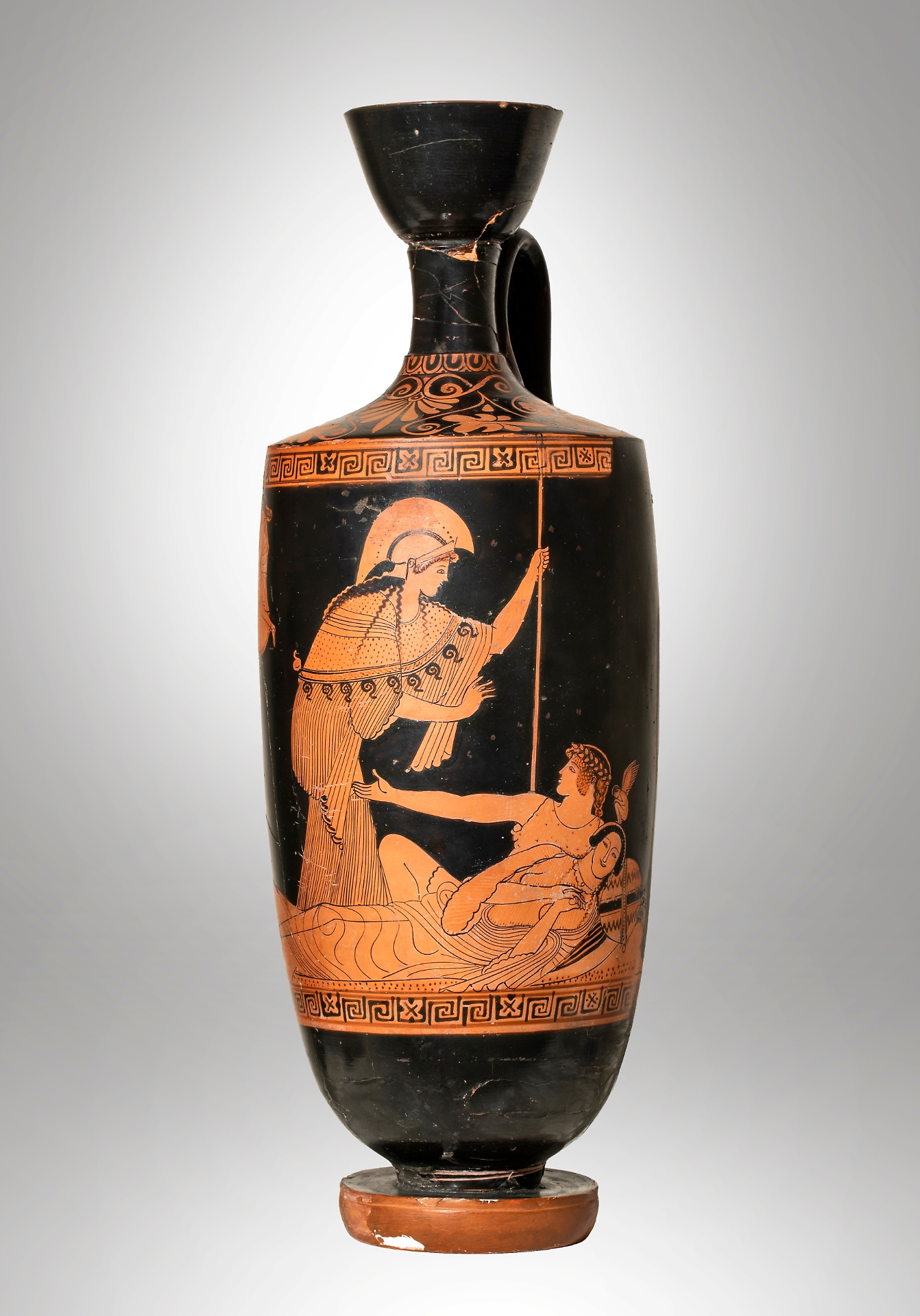 Tra i pezzi più significativi della visita spicca la celebre lekythos attica a figure rosse, risalente al decennio 470/460 a.C. Sulla superficie di questo vaso è impressa una delle scene più iconiche e dolorose del mito classico: il tradimento di Teseo.