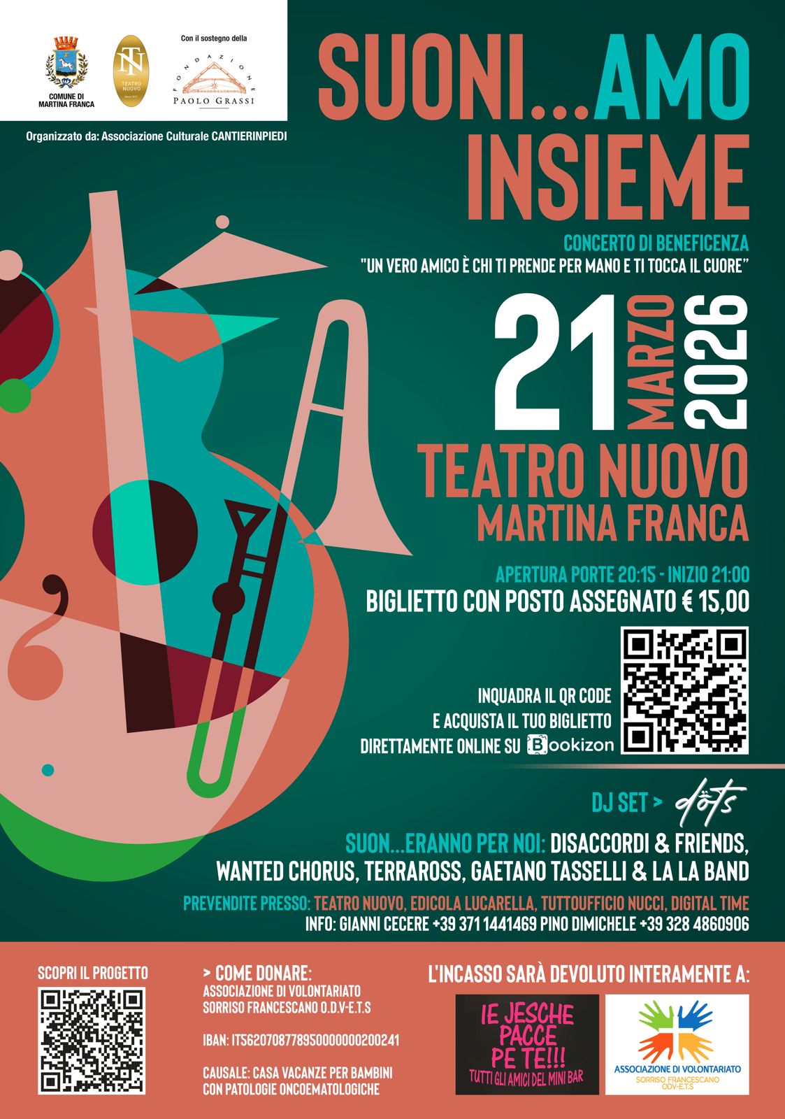 MARTINA FRANCA (TA) – Il conto alla rovescia è ufficialmente partito: il Teatro Nuovo si prepara a ospitare, sabato 21 marzo, la terza edizione di "Suoni...AMO Insieme". L'evento, nato nel 2024 per onorare la memoria dei musicisti Stefano Scarci e Francesco Pellegrini, trasforma le note in un potente strumento di speranza e vicinanza.