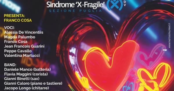 Il cuore della serata batte per la ricerca e il supporto educativo. Durante l'evento sarà attivata una raccolta fondi per sostenere l'instancabile lavoro dell'Associazione guidata dalla presidente Anna De Florio, mamma di Mattia e Isabella. La Sindrome X Fragile è una condizione genetica rara, principale causa ereditaria di disabilità intellettiva e disturbi dello spettro autistico: dal 2011, l’ODV pugliese è un faro per le famiglie, garantendo percorsi psicologici e di autonomia ai ragazzi.