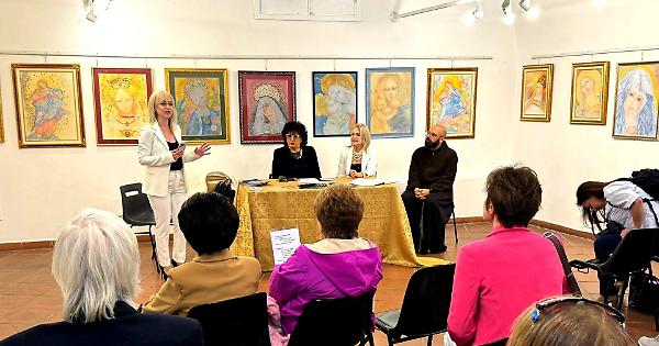 Nell’immaginare la mostra, la pittrice ha pensato, in primis, al femminile, alla donna e nel femminile ha brillato lo sguardo di Maria, la Madre di Gesù e di tutti gli uomini. Il tema sacro della Madonna diventa universale, antico e moderno.