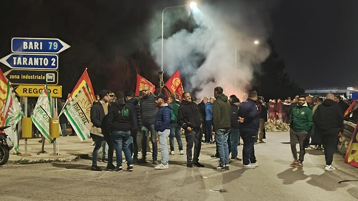 Il blocco stradale notturno davanti all'ex Ilva - Taranto