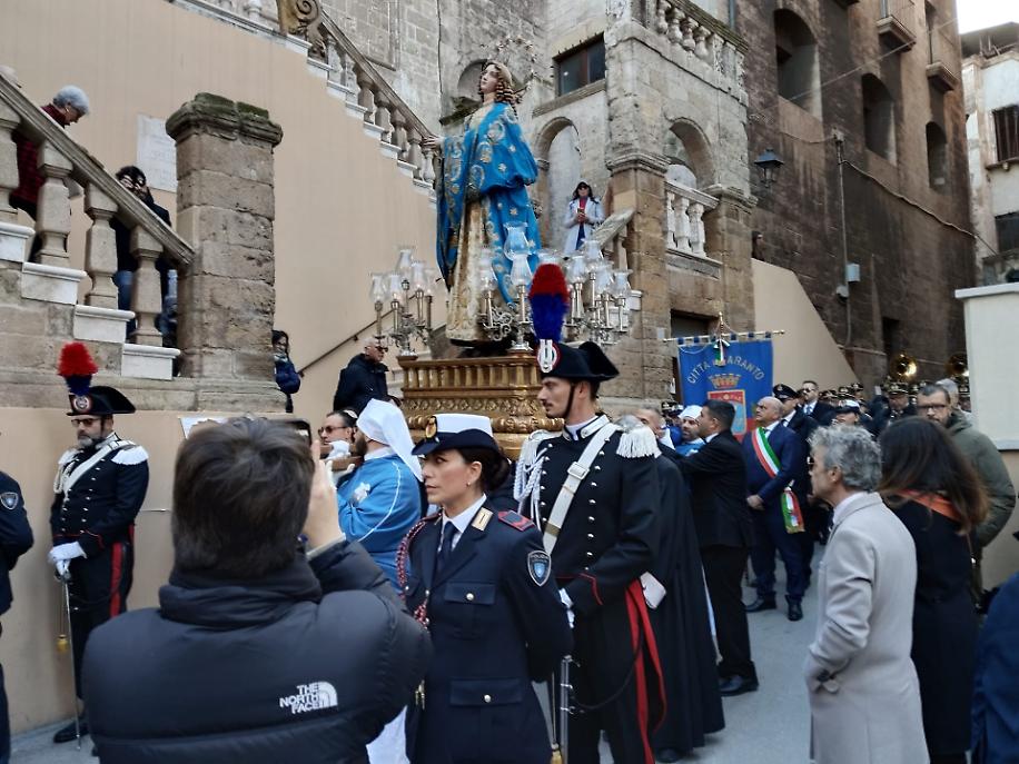 Assieme al sodalizio dell’Immacolata hanno partecipato alla processione rappresentanze di tutte le confraternite cittadine. Dietro la statua hanno preso posto il gonfalone del Comune accompagnato dall'assessore Lucio Lonoce e la grande orchestra di fiati “Santa Cecilia–Città di Taranto”, diretta dal m. Giuseppe Gregucci, che ha eseguito le pastorali natalizie tarantine assieme alla nenia tradizionale “O Concetta Immacolata”, che un tempo veniva cantata dai bambini davanti agli altarini nei vicoli in occasione della novena.
