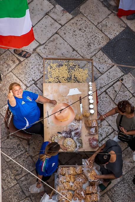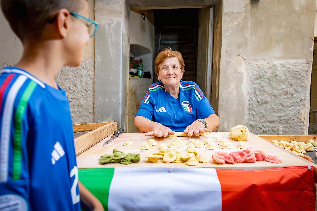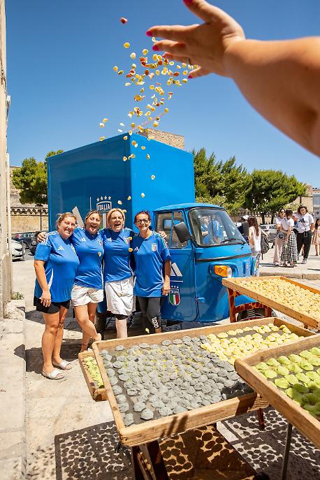 In strada - dove le bancarelle delle pastaie si affacciano - viene lavorata a mano la pasta secondo un’eredità che si tramanda di generazione in generazione, come la passione per la Nazionale. Per l’occasione le orecchiette appaiono anche in versione tricolore: verdi, bianche e rosse. Un messaggio che rimanda al forte sentimento aggregante che la Nazionale di calcio porta con sé.