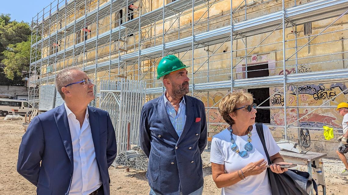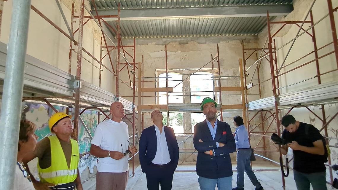 BARI - Questa mattina il sindaco di Bari Vito Leccese, accompagnato dagli assessori ai Lavori pubblici, Domenico Scaramuzzi, e alla Rigenerazione urbana, Giovanna Iacovone, si è recato sul cantiere in corso per la riqualificazione dell’edificio H della ex Caserma Rossani, che al termine dei lavori di riqualificazione ospiterà la nuova sede dell’Accademia di Belle Arti.