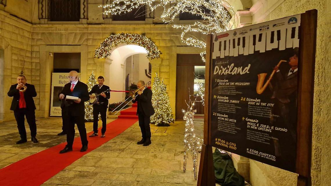 Tanti gli eventi per celebrare al meglio l’atmosfera natalizia, molti pensati per i bambini, la quasi totalità gratuiti, tra concerti, spettacoli, festival, moda solidale, presepi, mercatini, casa di Babbo Natale, magia, luminarie, cori, e tanto altro. Hanno inaugurato ieri in Piazza Albanese le degustazioni a cura di Artevino (in programma anche ogni martedì vino alla vigilia di Natale) e gli eventi organizzati dall’Associazione delle Arti in collaborazione con Visit Trani e il contributo della Città di Trani con il Festival Dixieland, la marching band itinerante per le vie della città e il concerto “Jazz On The Mississippi” a Palazzo delle Arti Beltrani. Le esibizioni della Apulia Dixie Swing Band risuoneranno ogni sabato, fino al 4 gennaio, in maniera itinerante per animare le strade principali del centro commerciale cittadino (dalle ore 19.00 alle ore 20.00) per poi giungere all’interno del Palazzo delle Arti Beltrani per i concerti dixie e swing (ore 21:00) https://www.vivaticket.com/it/tour/festival-dixieland/4030