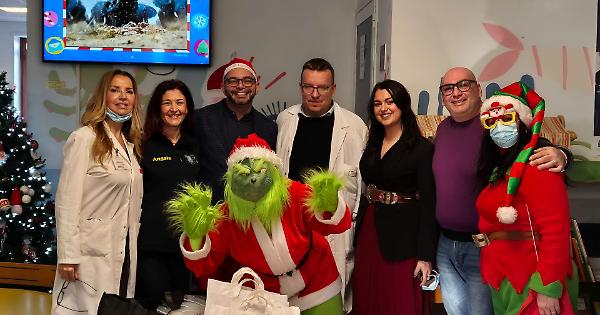 Lunedì 16 dicembre, il presidente dell’associazione, Claudio Salinaro, insieme alla socia e volontaria Noemi dell’Orco, alla mascotte “Grinch” impersonata da Doriana Di Fiore (Associazione “Amici delle Feste”) e alla cantante tarantina Maggie Chiarello (in arte Maggie), ha visitato il reparto di oncologia pediatrica Nadia Toffa dell’ospedale SS. Annunziata di Taranto.