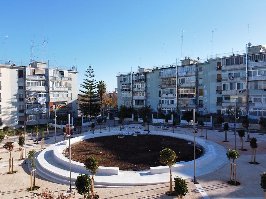 L’intervento riguarda un’area nei pressi di via Altamura, nel quartiere San Paolo di Bari, dove un piazzale incolto è stato trasformato in un nuovo spazio pubblico grazie a un processo progettuale che ha coinvolto i residenti in un percorso di partecipazione comunitaria.