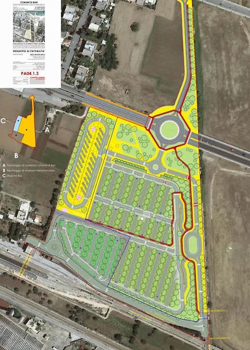 L’intervento si inquadra in una complessiva strategia portata avanti dal Comune di Bari per il miglioramento delle condizioni di mobilità sostenibile e il riequilibrio del modal split (o ripartizione modale) nell’area urbana e metropolitana a favore dei sistemi di trasporto pubblico locale e delle forme di mobilità ciclabile e pedonale. In questo senso, la scelta relativa al sito di intervento è strategica in quanto coincidente con una delle più importanti stazioni del Nodo ferroviario di Bari in direzione di Bari Centrale, Brindisi-Lecce, Foggia (quindi Roma e Milano), Barletta, Quartiere ed Ospedale San Paolo e Aeroporto di Bari. L’intervento prevede lo sviluppo e la trasformazione degli spazi compresi tra la linea ferroviaria Bari Barletta e via Napoli, in corrispondenza della stazione ferroviaria Fesca San Girolamo, per finalità a carattere intermodale, in connessione viabile e pedonale con il quartiere San Girolamo a nord di via Napoli. L’ipotesi è che la realizzazione del centro intermodale, con funzioni di filtro del traffico veicolare privato e del trasporto pubblico locale su gomma, possa utilmente legarsi ad altre attività terziarie e di servizio, ad interventi di valorizzazione ambientale, di razionalizzazione viabilistica, di miglioramento delle caratteristiche funzionali ed urbane del contesto locale. La realizzazione di un parcheggio di scambio tra autovetture, treni, bus urbani ed extraurbani, consentirà di creare un nuovo hub intermodale ai margini della città, finalizzato anche a far raggiungere la Fiera del Levante da qualsiasi fruitore. All’ingresso del parcheggio saranno, infatti, ubicati una fermata della linea del trasporto pubblico locale ed un percorso ciclabile che raggiungono la Fiera.