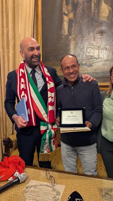 BARI - Un ritorno carico di emozione e gratitudine quello di Joao Paulo a Bari. L’indimenticato attaccante brasiliano, protagonista assoluto con la maglia biancorossa tra il 1989 e il 1994, è stato ricevuto a Palazzo di Città dal sindaco Vito Leccese, in un incontro promosso dall’associazione culturale CasaBari.