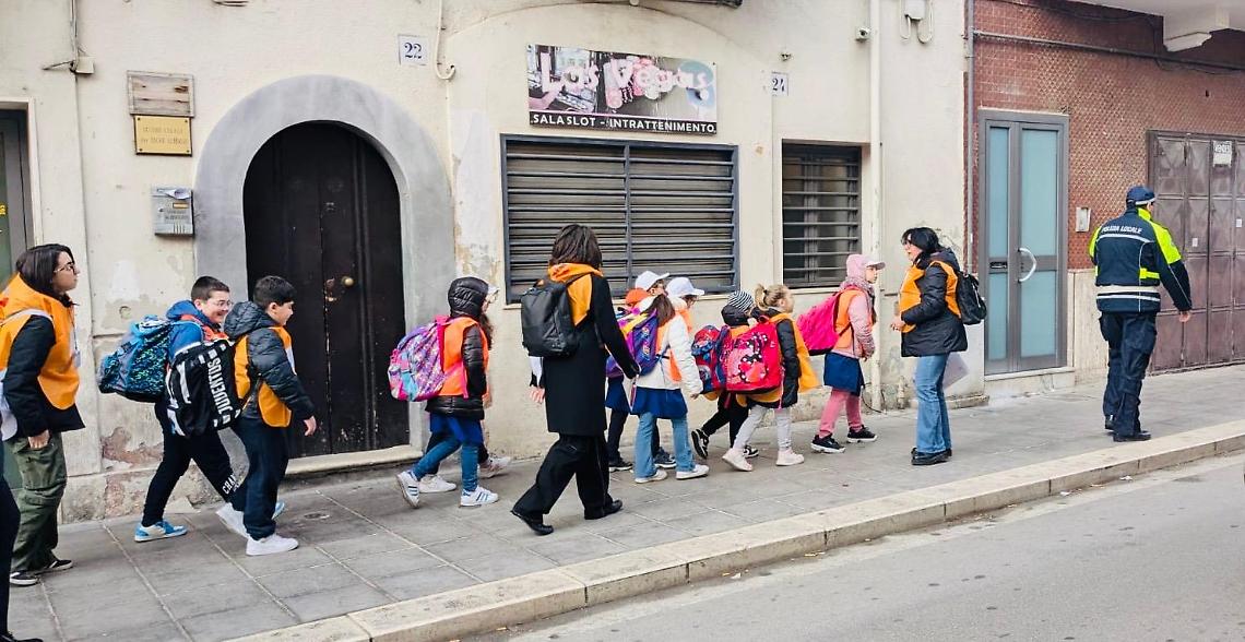 Il debutto ufficiale è avvenuto questa mattina con due “carovane” di bambini dirette al plesso Dalesio dell’Istituto Comprensivo “Giovanni Paolo II - De Marinis”. La prima è partita da piazza Umberto I, lungo il tragitto della linea verde, con la partecipazione degli assessori Domenico Scaramuzzi, Carla Palone e Vito Lacoppola, insieme agli operatori della cooperativa Equal Time e alla Polizia Locale.
