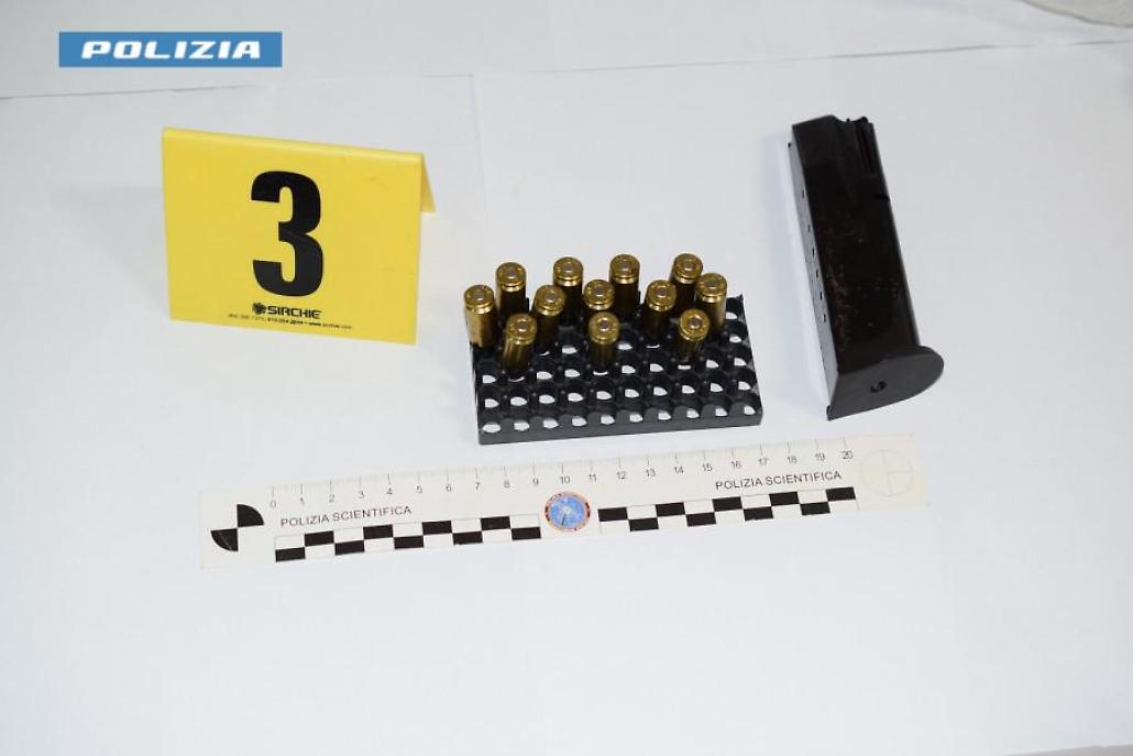Nel dettaglio, gli agenti della Questura di Lecce hanno rinvenuto una pistola Beretta PX4 con la matricola abrasa, segno evidente della volontà di rendere l’arma irrintracciabile. L’arma era accompagnata da un caricatore con 12 cartucce calibro 40, mentre in un involucro separato sono state recuperate altre 127 munizioni di vario calibro. L’intero materiale era occultato all’interno di una nicchia scavata nel muro perimetrale della casa, un nascondiglio realizzato con estrema cura per evitare i controlli.