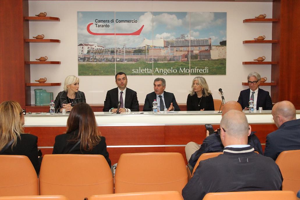 E' stato presentato oggi, venerdì 16 maggio, il Protocollo di Intesa sottoscritto tra Camera di Commercio Brindisi – Taranto e Puglia Sviluppo Spa, con la partecipazione di Alessandro Delli Noci, Assessore Regione Puglia - Sviluppo economico, Gianfranco Lopane, Assessore Turismo, Vincenzo Cesareo e Claudia Sanesi, Presidente e Segretario generale della Camera di Commercio Brindisi – Taranto, Grazia D'Alonzo e Antonio De Vito, Presidente e Direttore generale di Puglia Sviluppo Spa.