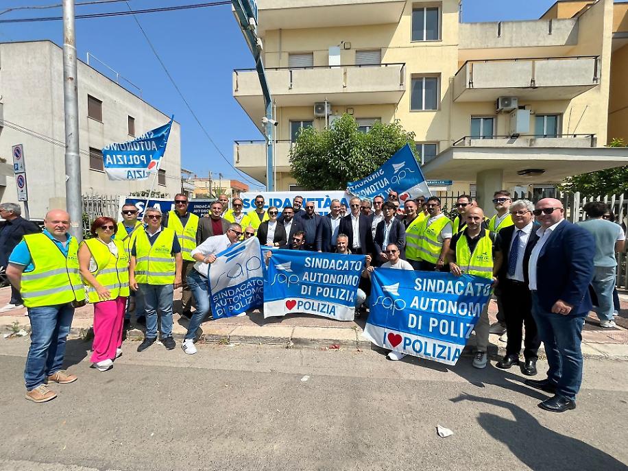 Accanto agli agenti anche i segretari regionali del SAP per Puglia e Basilicata, Francesco Pulli e Michele Gallucci, il Segretario Generale Stefano Paoloni, il Segretario Nazionale Vito Stasolla e le delegazioni delle Segreterie Provinciali del sindacato provenienti da tutta la Puglia.