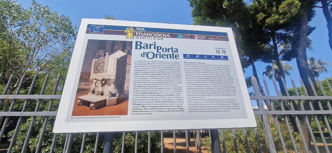 BARI - La città di Bari aggiunge un nuovo tassello alla propria vocazione culturale e spirituale, completando l’infrastrutturazione dell’itinerario urbano della Via Francigena, il percorso europeo che da Canterbury conduce fino a Santa Maria di Leuca. Il tratto barese, da Santo Spirito a Torre a Mare, è ora dotato di nuove segnalazioni, installazioni artistiche e pannelli informativi, in linea con gli standard internazionali dei grandi cammini.
