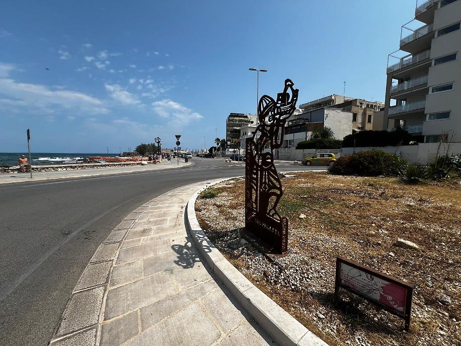 Nel dettaglio, lungo il tracciato cittadino sono stati posizionati 40 pali direzionali per l’orientamento dei camminatori, 10 cippi segnavia ispirati al modello di Santiago de Compostela, cartelli informativi e di benvenuto, oltre a un’installazione artistica in acciaio corten, raffigurante un pellegrino normanno, ripreso da un bassorilievo scolpito sotto la cattedra dell’Abate Elia, nella Basilica di San Nicola.