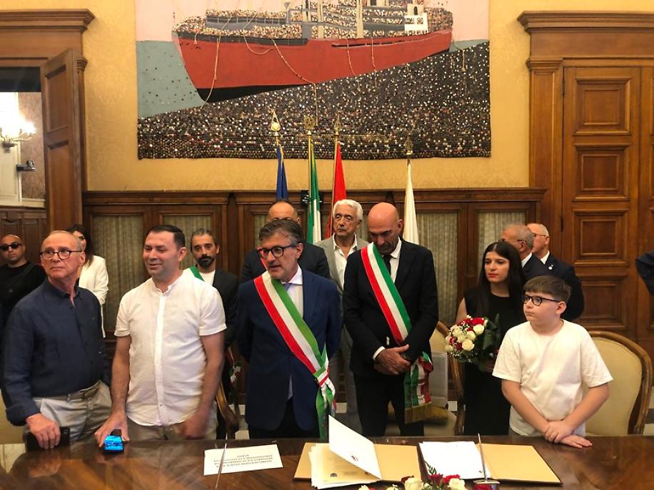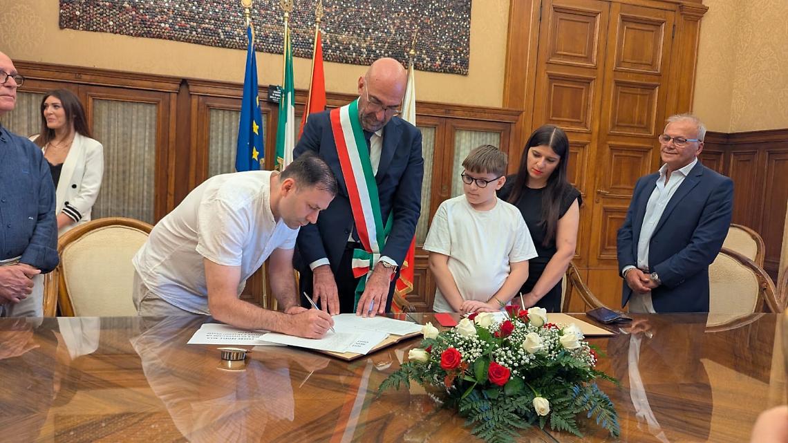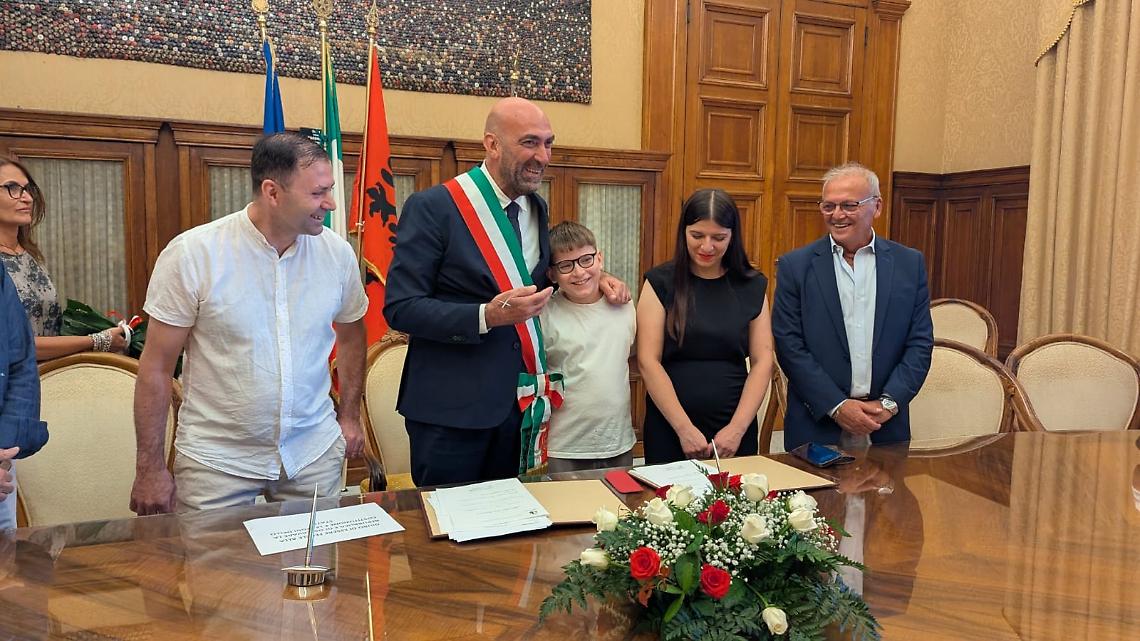Il primo momento si è tenuto nella sala giunta di Palazzo di Città, dove Daniela e Astrit Nasufi, residenti a Bari da anni, hanno giurato per acquisire la cittadinanza italiana, alla presenza del sindaco Vito Leccese. La coppia, che ha costruito qui la propria vita e cresciuto il figlio Daniel, ha ricevuto l’abbraccio simbolico della comunità proprio nel giorno in cui festeggia 22 anni di matrimonio. “Oggi – ha commentato Leccese – si chiude un cerchio: Daniela e Astrit arrivarono a Bari pochi anni dopo l’approdo della Vlora, e diventano ora italiani a tutti gli effetti. La loro storia parla di sacrifici, lavoro e integrazione autentica, senza mai dimenticare le proprie radici albanesi”.