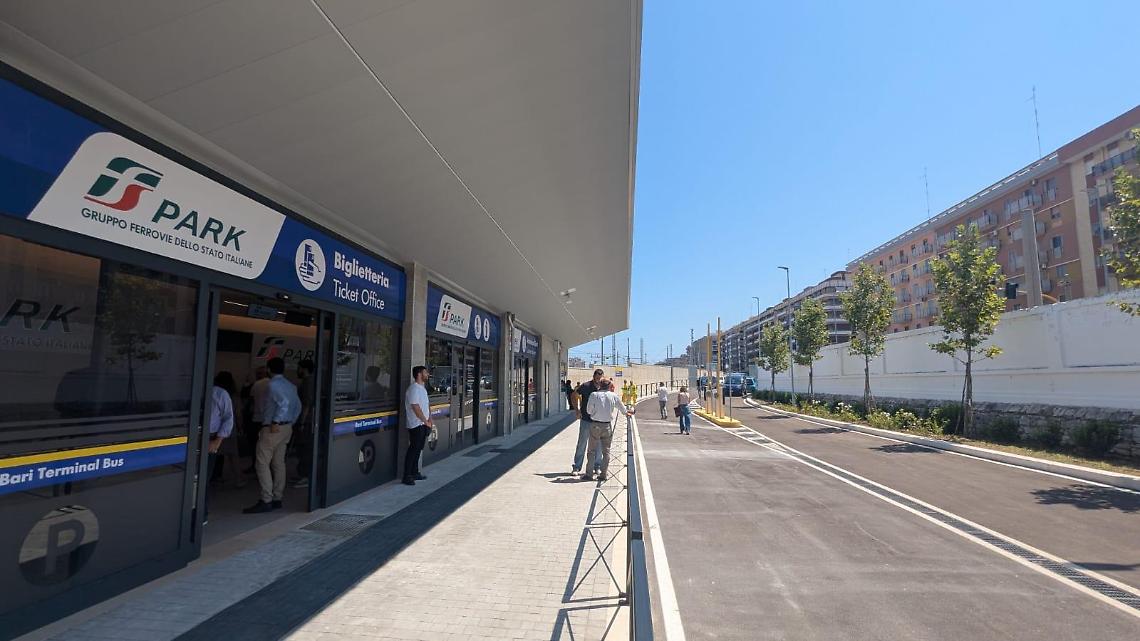 Il nuovo terminal di Bari Centrale destinato ai bus extraurbani aprirà il prossimo 8 settembre. FS Park (società controllata di FS Sistemi Urbani) gestirà il parcheggio, che si sviluppa su una superficie di oltre 9mila metri quadri, con una capacità di 19 stalli destinati alla sosta dei bus: dieci stalli per il carico e lo scarico dei passeggeri, uno dedicato esclusivamente allo scarico passeggeri (Drop off) e otto per la sosta prolungata dei mezzi.