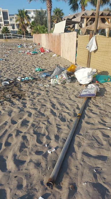 BARLETTA - All’alba del giorno successivo alla Notte di San Lorenzo, le spiagge di Levante e Ponente a Barletta si sono presentate come un campo di battaglia: bottiglie vuote, plastica, cartacce e perfino carrelli della spesa abbandonati sulla sabbia. A completare il quadro, pali segnaletici divelti e rifiuti sparsi ovunque, segni evidenti di una notte trasformata in un atto di inciviltà collettiva.