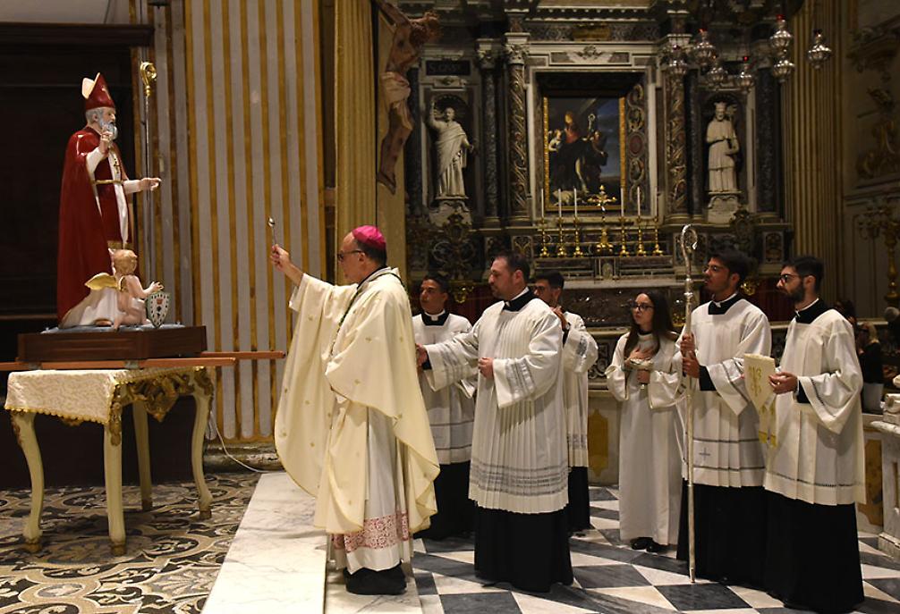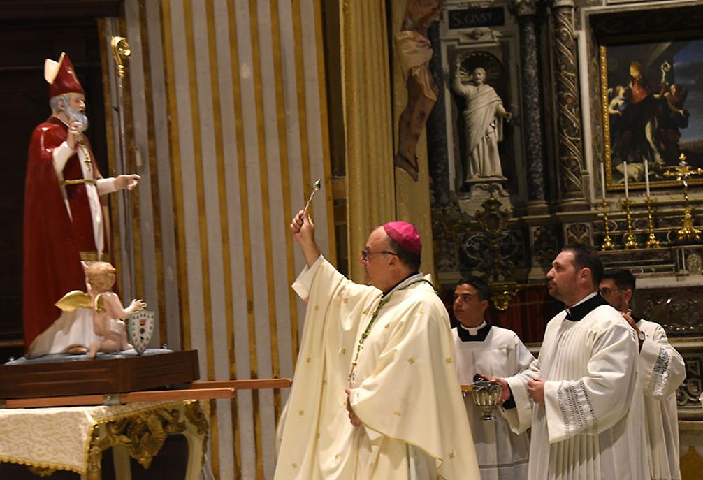 Con la benedizione del simulacro in cattedrale è partita la preparazione di 11 giorni che precede la festa dei Santi Oronzo, Giusto e Fortunato. L’arcivescovo Panzetta ha voluto inaugurare la prima “peregrinatio orontiana” lungo le località costiere della diocesi