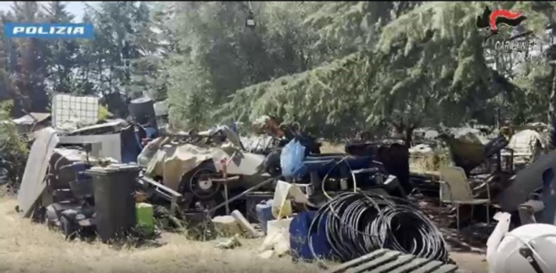 Dalle verifiche è emerso che, nel corso del tempo, il terreno era stato adibito a un deposito incontrollato di rifiuti di ogni genere. Sul posto sono stati rinvenuti veicoli fuori uso, parti di automobili, due container, macchinari arrugginiti come compressori e rullo, pneumatici dismessi, materiali ferrosi e plastiche, oltre a numerose biciclette e ciclomotori non funzionanti. Presenti anche attrezzi agricoli in stato di disfacimento e mobili abbandonati.