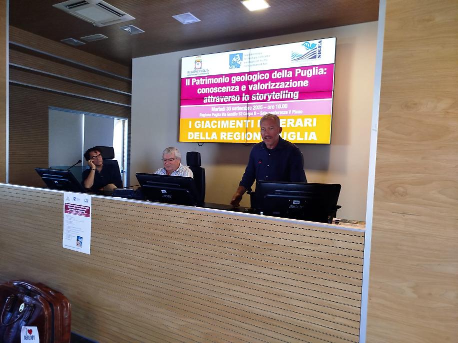 L’iniziativa, dal titolo “Patrimonio geologico della Puglia: conoscenza e valorizzazione attraverso lo storytelling”, è stata organizzata dall’Assessorato regionale all’Ambiente in collaborazione con la Soprintendenza Archeologia, Belle Arti e Paesaggio per la Città Metropolitana di Bari e con la Sezione Puglia della SIGEA-APS. Sono intervenuti, tra gli altri, la dirigente della Soprintendenza Francesca Romana Paolillo, l’assessora all’Ambiente del Comune di Bari Elda Perlino e il geologo Salvatore Valletta della Società Italiana di Geologia Ambientale-APS, che ha moderato l’incontro.