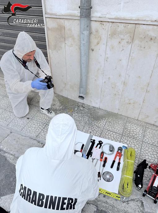A supporto dell’operazione sono intervenuti anche i militari della Sezione Investigazioni Scientifiche di Taranto, che hanno eseguito rilievi tecnici specializzati, verifiche dattiloscopiche e prelevato campioni biologici e materiali da inviare al Raggruppamento Carabinieri Investigazioni Scientifiche di Roma per ulteriori analisi.