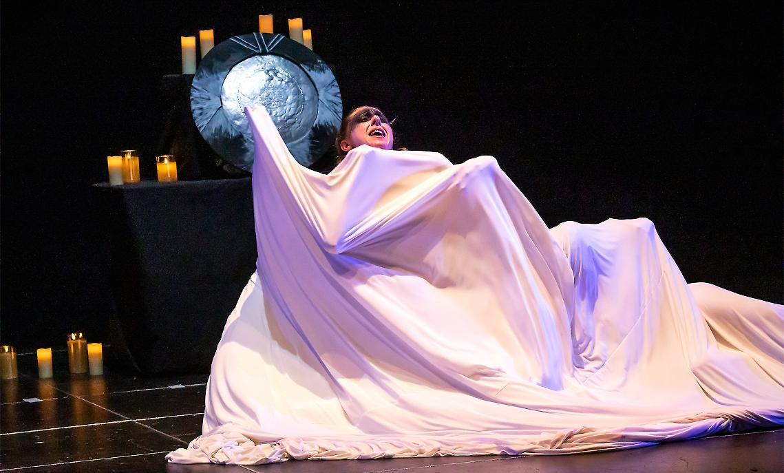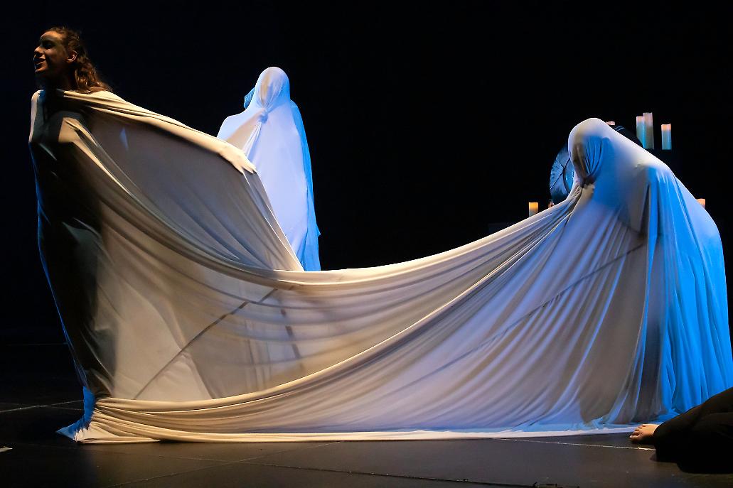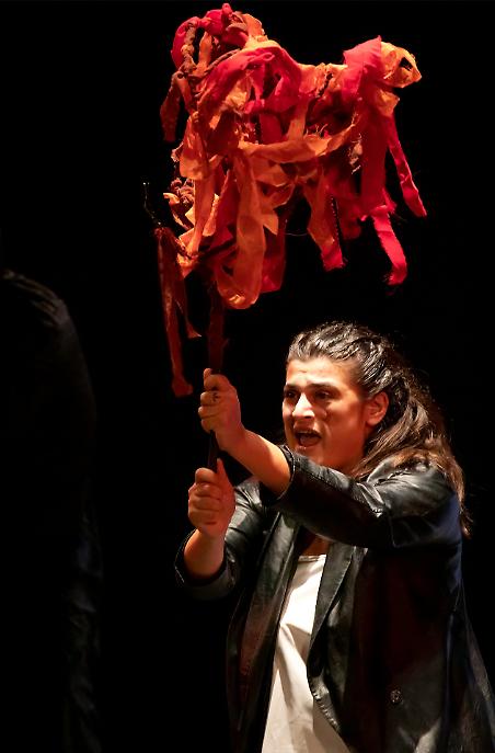 La regia di Cimaglia restituisce l’immagine di una Troia in fiamme dopo la caduta delle mura e la distruzione portata dai guerrieri greci usciti dal cavallo. Morti uomini, anziani e bambini, restano soltanto le donne troiane, uniche testimoni delle atrocità, in attesa di essere condotte come schiave dai vincitori. Nessuna giustizia, nessuna salvezza divina: solo la consapevolezza del dolore e un grido di rabbia inascoltato contro l’ingiustizia della guerra.