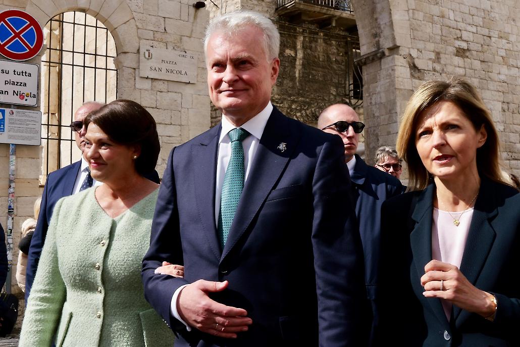 Davanti alla Basilica, insieme a Emiliano, erano presenti il sindaco di Bari Vito Leccese, il prefetto Francesco Russo, l’arcivescovo della diocesi di Bari-Bitonto monsignor Giuseppe Satriano e il rettore della Basilica pontificia di San Nicola padre Giovanni Distante, a testimonianza del rilievo istituzionale e spirituale dell’incontro. Il presidente lituano e la consorte hanno reso omaggio alle reliquie di San Nicola, patrono della città e figura venerata anche in Lituania.