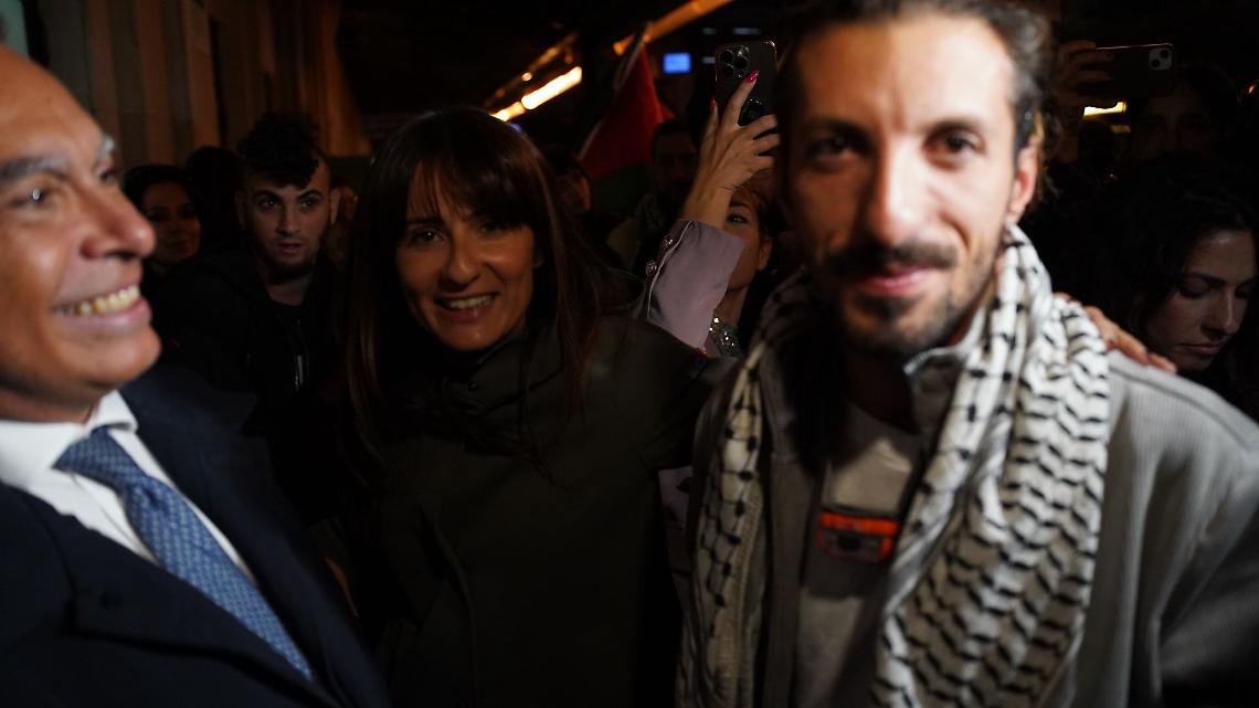 All’arrivo, la banchina si è riempita di applausi e cori, tra cui il grido “Palestina libera”, scandito da chi ha voluto manifestare vicinanza e solidarietà all’attivista dopo i giorni di tensione trascorsi nel Mediterraneo.