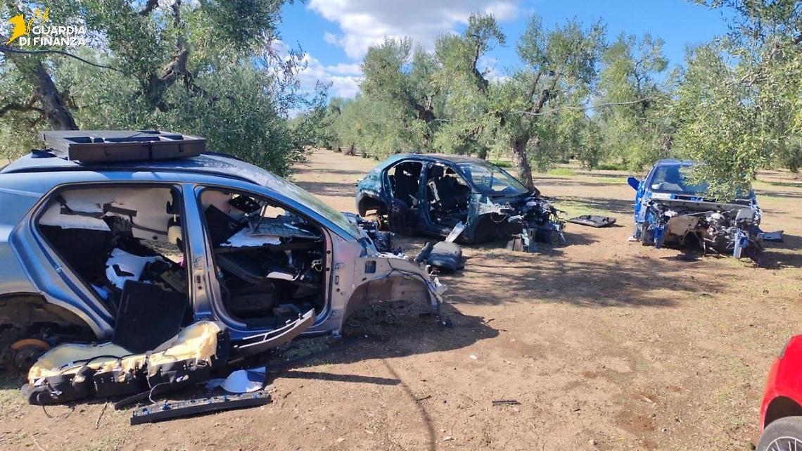Durante la ricognizione, gli equipaggi a bordo del mezzo aereo hanno individuato i nascondigli in cui erano celati i veicoli. Undici automobili sono state ritrovate completamente smontate e prive di targa, mentre le restanti tre, pur presentando ancora le targhe originali, risultavano parzialmente cannibalizzate, con diversi componenti già asportati.