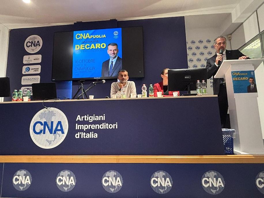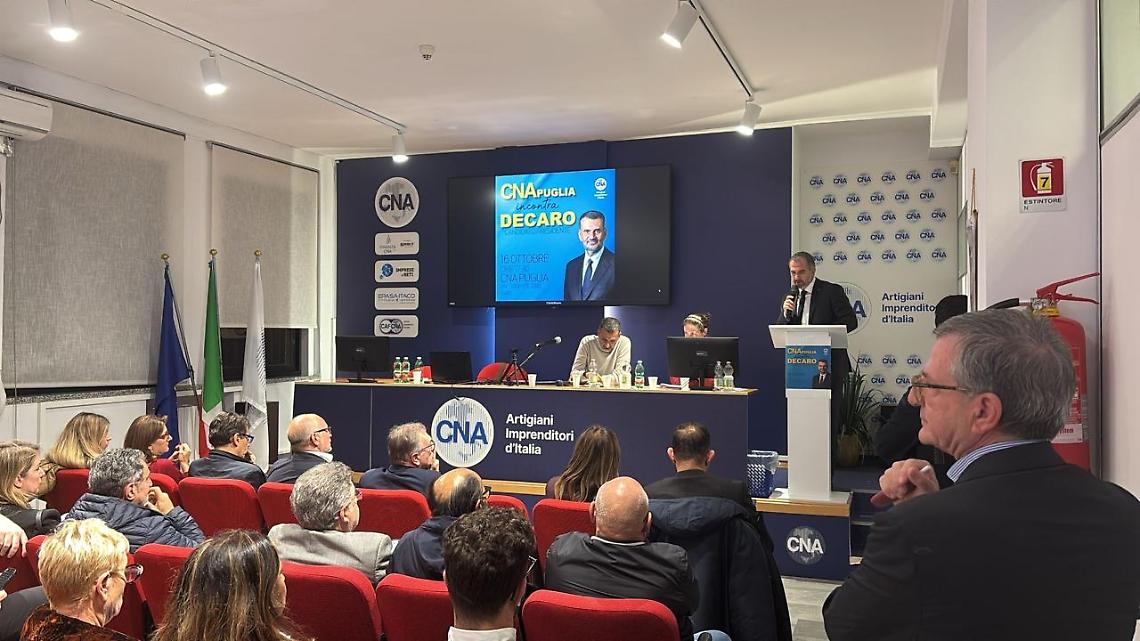 BARI - La CNA Puglia ha presentato al candidato presidente della Regione, Antonio Decaro, il documento programmatico dell’Artigianato e delle Piccole Imprese, una piattaforma di proposte che punta a rafforzare il tessuto produttivo regionale, sostenendo le eccellenze locali con una visione orientata a sostenibilità, innovazione e ricambio generazionale.