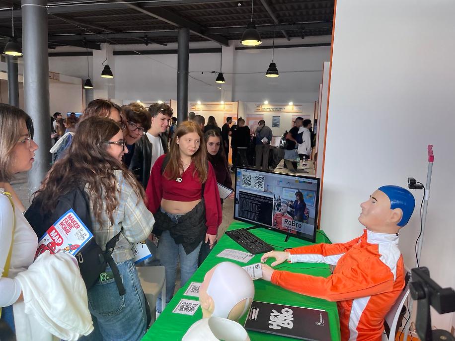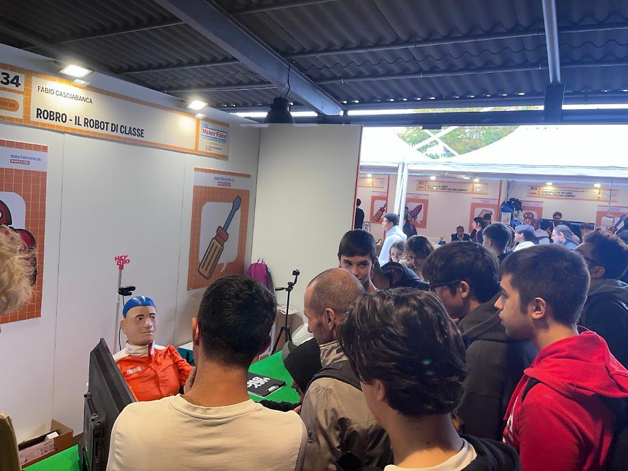 Alla Maker Faire Rome, svoltasi dal 17 al 19 ottobre 2025 al Gazometro Ostiense, RoBro è stato tra i protagonisti dell’area educational. Nello stand dedicato, studenti, insegnanti e famiglie hanno potuto interagire con il robot, scoprire le sue funzionalità, consultare guide didattiche open source e partecipare a laboratori di robotica educativa.