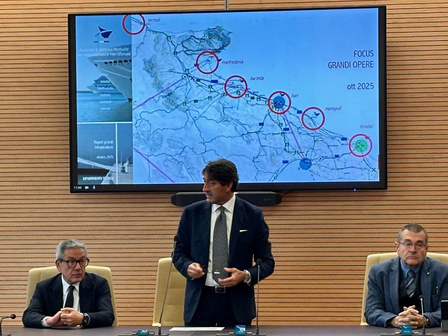 BRINDISI - Si è svolta ieri, nella sala ex Comitato dell’Autorità di Sistema Portuale del Mare Adriatico Meridionale, la conferenza stampa di presentazione del nuovo presidente Francesco Mastro, nominato con decreto n.268 firmato il 23 ottobre dal vicepresidente del Consiglio e ministro delle Infrastrutture e dei Trasporti Matteo Salvini. L’atto trasforma l’incarico di commissario straordinario, assunto da Mastro il 30 giugno 2025, in quello di presidente effettivo dell’Ente che gestisce i porti di Bari, Brindisi, Barletta, Monopoli, Manfredonia e Termoli.