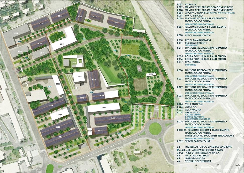 Il piano non riguarda solo l’ambito universitario ma si inserisce in una visione più ampia di rigenerazione urbana, che prevede la creazione di oltre 20 ettari di aree verdi. L’intervento permetterà di costruire una connessione ecologica e funzionale tra il Parco della Giustizia, l’ex Caserma Magrone e l’ex Ospedale Bonomo, restituendo alla città nuovi spazi di vita, incontro e ricerca.