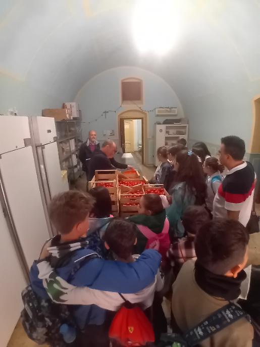 La visita è iniziata dai locali di “RecuperiAMOci”, dove Maurizio, Carmine, Nardino e altri volontari raccolgono ogni giorno prodotti ortofrutticoli dai mercati di Bisceglie e Molfetta e dall’Ipercoop, destinandoli al recupero e alla redistribuzione. Gli studenti hanno assistito alle operazioni di selezione e pulizia della frutta e della verdura, coordinate da Demetrio, Michele, Angela e Andreina, che ogni giorno cucinano alimenti prossimi alla scadenza per garantire pasti caldi a chi non ha nemmeno una cucina.