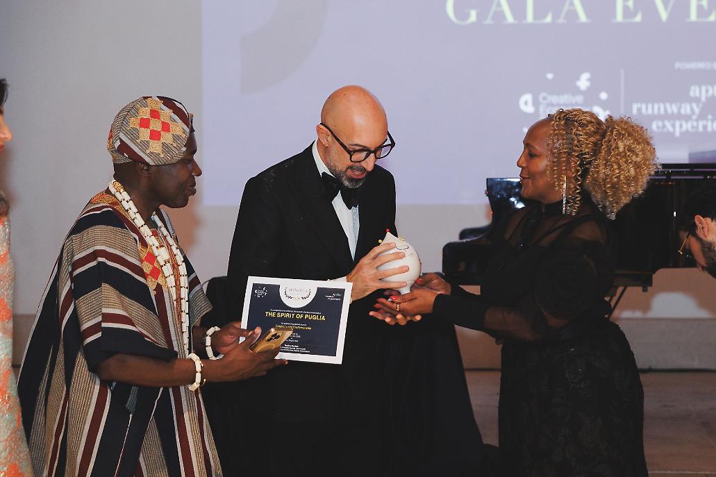 La serata ha rappresentato il primo appuntamento ufficiale della III edizione dell’Apulian Runway Experience, riunendo personalità del mondo dell’arte, della cultura e dell’impresa da diversi Paesi. Ospite d’onore è stata Ndileka Mandela, prima nipote del leader sudafricano, che ha consegnato personalmente i premi ai vincitori, rendendo omaggio al legame ideale tra Africa e Puglia, tra creatività e solidarietà.