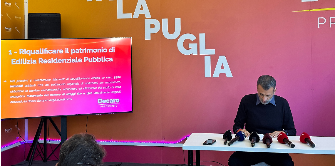 BARI - Una Puglia dove la casa torni a essere un diritto, non un privilegio. È da questo principio che parte la proposta del candidato della coalizione progressista alla presidenza della Regione, Antonio Decaro, che ieri pomeriggio ha incontrato la stampa per illustrare il suo Piano per l’Abitare, uno dei capitoli centrali del programma elettorale.