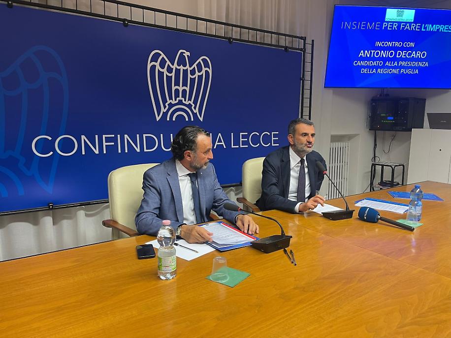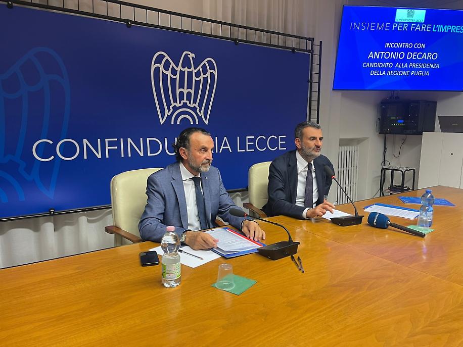 LECCE - Un confronto aperto e partecipato quello che si è svolto mercoledì pomeriggio a Lecce tra Antonio Decaro, candidato della coalizione progressista alla guida della Regione Puglia, e gli imprenditori di Confindustria Lecce. L’incontro ha offerto l’occasione per discutere delle strategie di sviluppo economico del territorio, con particolare attenzione alle filiere produttive, alla transizione energetica, alla gestione delle risorse idriche, alla tutela ambientale e al potenziamento delle infrastrutture logistiche e di trasporto.