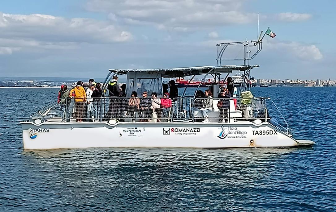 Sono intervenuti Marco Imperiale, Direttore generale della Fondazione con il Sud, Carlos Tercero, Consigliere Culturale e Scientifico dell'Ambasciata di Spagna in Italia,Mattia Giorno, Vicesindaco di Taranto, Stella Falzone, direttrice MarTA Taranto, Caterina Ronconi, referente Beni culturali Fondazione con il Sud , Vittorio Pollazzon, Presidente Jonian Dolphin Conseervation, Bruno Díaz López biologo Fondatore e Direttore del Bottlenose Dolphin Research Institute (BDRI) di O Grove in Spagna, Francesco Cosa, Assessore allaBlue Economy Comune di Taranto e, infine, Carmelo Fanizza, founder della JDC e responsabile del progetto San Paolo Dolphin Refuge: