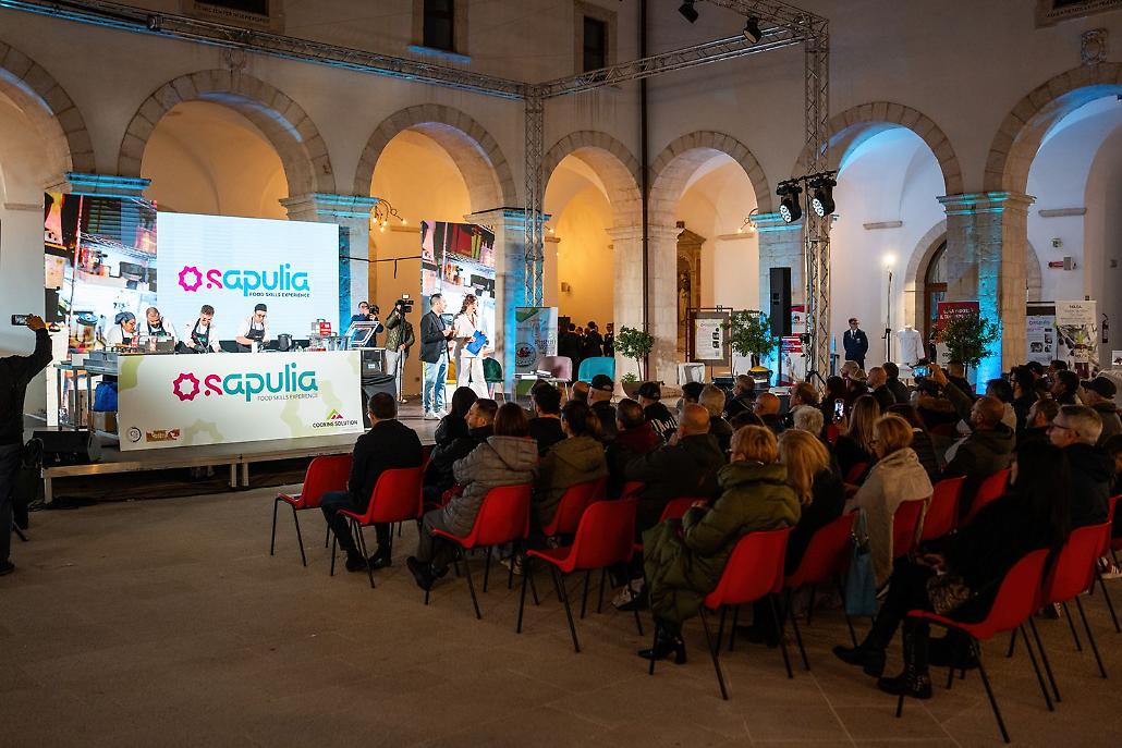 MOLFETTA - La Puglia raccontata attraverso il gusto, la formazione e la passione per la cucina. È questo il filo conduttore della prima edizione di “Sapulia”, l’evento che ha trasformato la Fabbrica San Domenico di Molfetta in un laboratorio di sapori, idee e contaminazioni creative. La manifestazione, organizzata da Cooking Solution con il patrocinio della Regione Puglia, ha proposto due giornate dedicate alla cultura gastronomica e alla formazione professionale, sotto la guida del presidente Leonardo Messina e con la collaborazione di Gianfranco Laforgia, fondatore di Sapori di Puglia e direttore commerciale di Pugliosità.