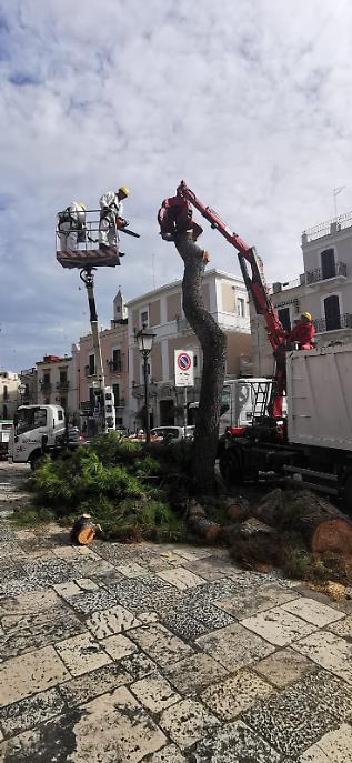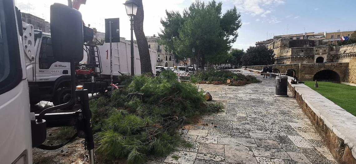 Mentre sono in corso le operazioni di rimozione dei tronchi caduti, i tecnici stanno effettuando un monitoraggio approfondito di tutti gli esemplari potenzialmente instabili. Da un primo esame, è emerso che un pino lungo il perimetro del Castello Svevo dovrà essere rimosso immediatamente, poiché la zolla di ancoraggio risulta completamente ribaltata. Un altro albero, giudicato pericolante, sarà invece abbattuto nei prossimi giorni per garantire la sicurezza dei cittadini.
