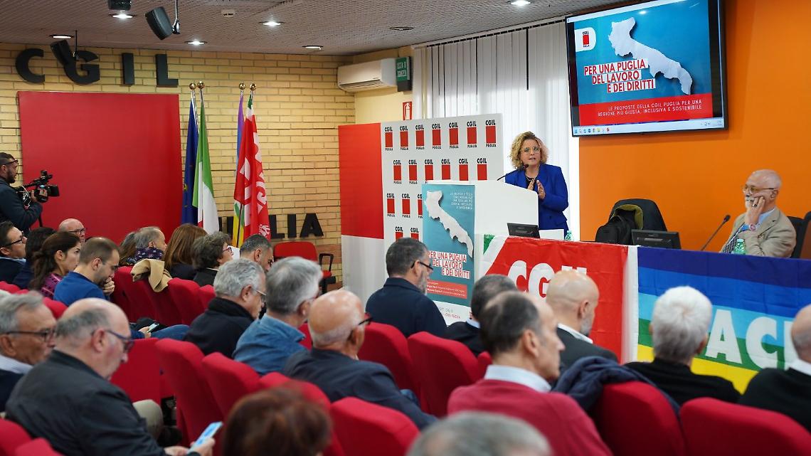BARI - “Per una Puglia del lavoro e dei diritti” è il titolo della piattaforma programmatica presentata dalla Cgil Puglia in vista delle elezioni regionali del 23 e 24 novembre, appuntamento che porterà al rinnovo del Consiglio regionale e all’elezione del successore di Michele Emiliano. L’iniziativa, promossa insieme alle Camere del Lavoro e alle categorie territoriali, ha voluto aprire un confronto pubblico con i candidati alla presidenza della Regione, per discutere di occupazione, welfare e sviluppo sostenibile.