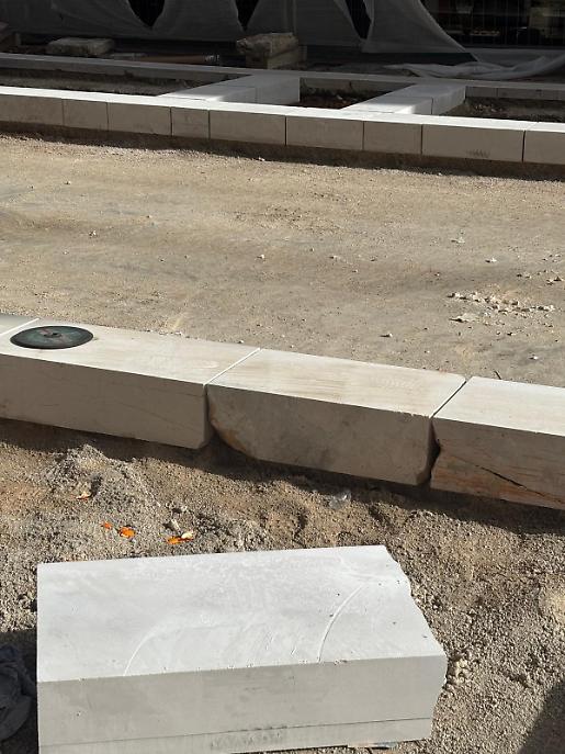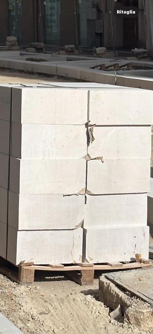 Alcune pietre destinate alla nuova pavimentazione risultano danneggiate prima della posa. Prosegue il maxi intervento di riqualificazione finanziato con il Pnrr