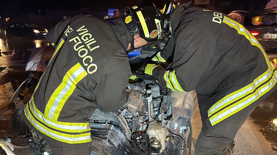 Durante le operazioni di soccorso, una delle auto ha preso fuoco e le fiamme sono state domate grazie all’intervento tempestivo di un commerciante della zona, che ha utilizzato un estintore del proprio negozio per spegnere il principio d’incendio in attesa dell’arrivo dei pompieri.