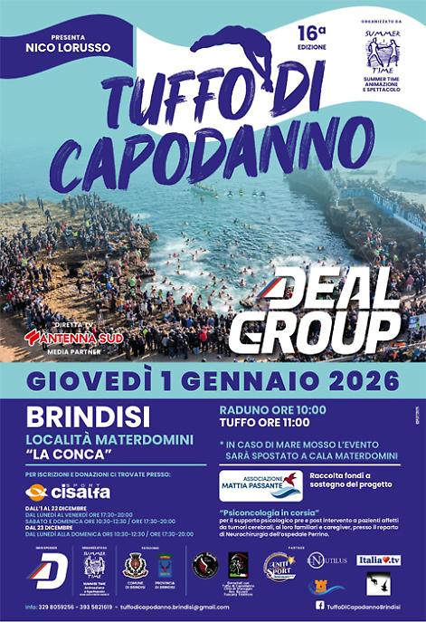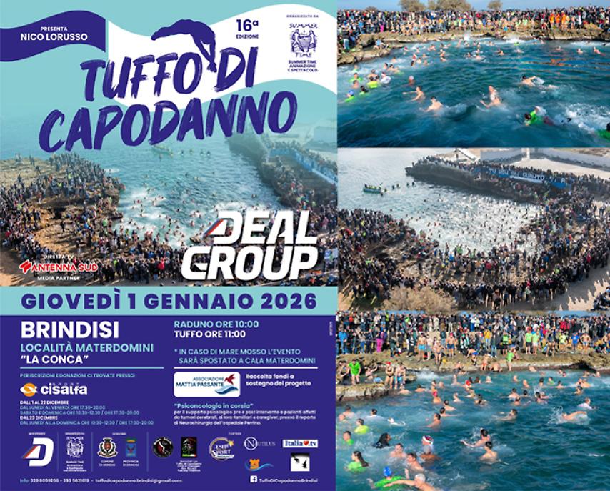 BRINDISI - La macchina organizzativa del Tuffo di Capodanno 2026 è ufficialmente partita e punta dritta a un nuovo traguardo: raggiungere la quota di 600 iscritti, obiettivo che renderebbe memorabile la sedicesima edizione della tradizionale manifestazione brindisina. L’iniziativa, da sempre legata alla solidarietà e considerata ormai parte integrante delle celebrazioni cittadine di inizio anno, è stata presentata nel corso di una conferenza stampa nella Sala Riunioni del Comune.
