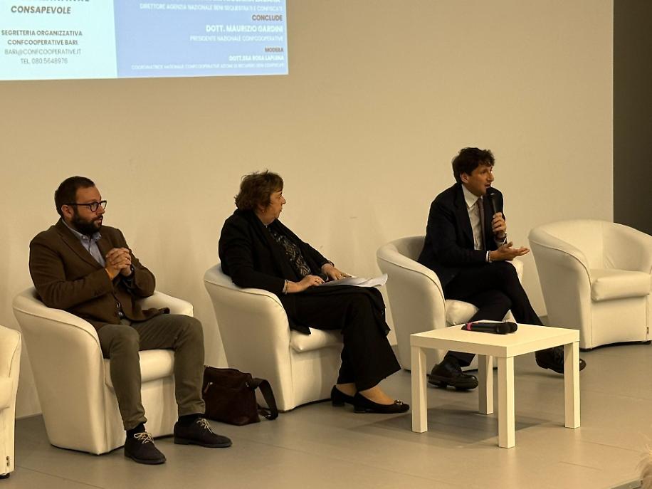 A chiudere l’incontro è stato Giuseppe Cozzi, presidente Confcooperative Bari–BAT, che ha rimarcato il valore sociale della restituzione: “Non è solo recuperare beni – ha sottolineato – ma restituire futuro e speranza a territori in cui la criminalità aveva sottratto risorse. È la dimostrazione che dalla confisca può nascere un percorso di riscatto collettivo”.