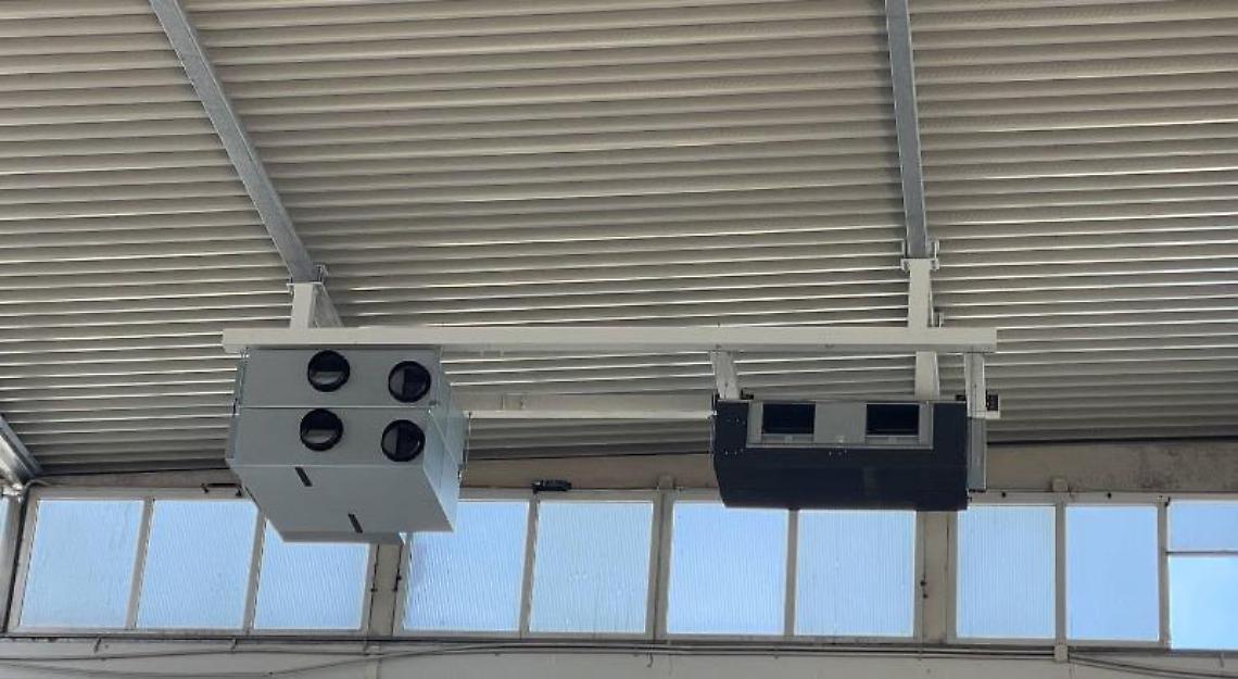 Tra le lavorazioni concluse figurano la posa delle nuove montanti elettriche, la rimozione dei vecchi canali termoventilanti, la coibentazione dell’impermeabilizzazione degli spogliatoi, la sostituzione degli infissi esterni, l’installazione di un nuovo sistema di climatizzazione, la rimozione del precedente parquet, la dismissione della vecchia copertura e l’installazione di quella nuova, oltre alla posa del nuovo impianto fotovoltaico e dei macchinari per la climatizzazione interna.